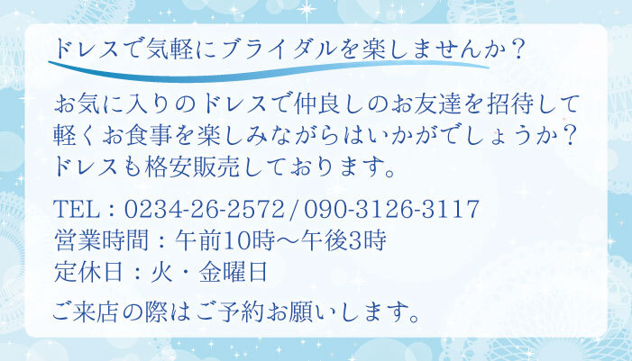 山形県酒田市の貸衣裳専門店【マリッヂうえの】です。